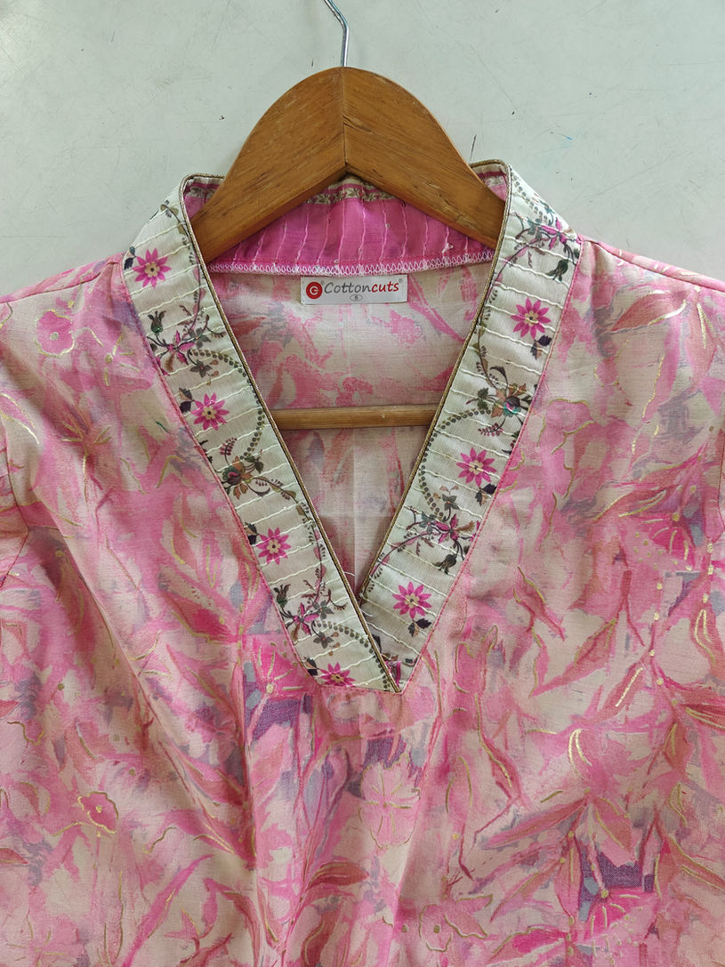Details: V neck with digital embroidery print with self weave thread and teeki work